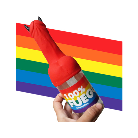 Biberón 100% Fuego Orgullo LGTBIQ+ Tetina Pene 🔥 Divertido biberón con forma de pene, ideal para fiestas y celebraciones temáticas del orgullo.