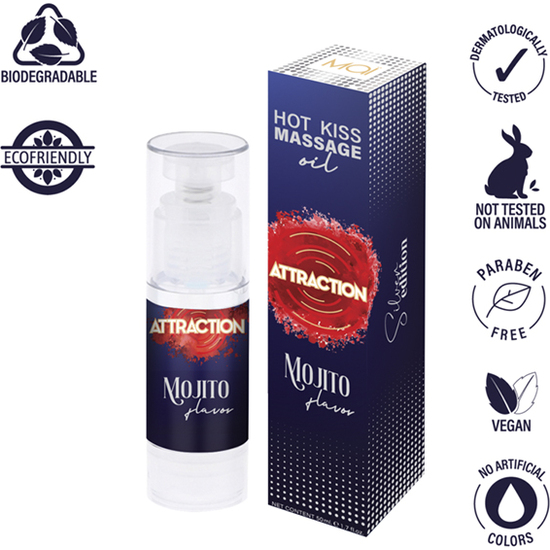 Aceite de masaje MAI Attraction 🍹🌿 50ml, con sabor a mojito auténtico, efecto calor 🔥, ideal para juegos preliminares y sexo oral. Vegano, seguro y delicioso.