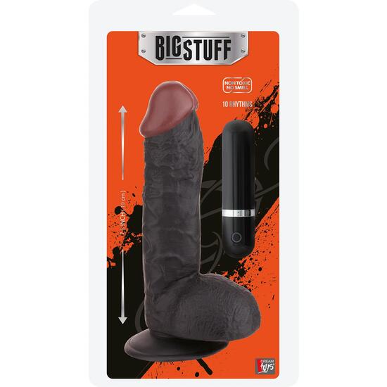 ¡Siente el poder de la masturbación sin límites! El BigStuff 7.5” es un dildo vibrador realista negro que se siente totalmente real. Su eje venoso y escroto firme proporcionan un tacto y aspecto auténtico, ideal tanto para juegos en solitario como en pareja.