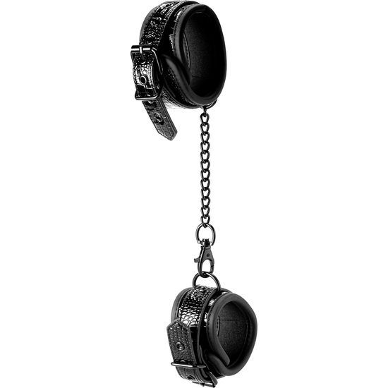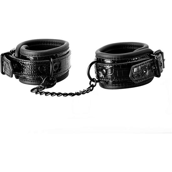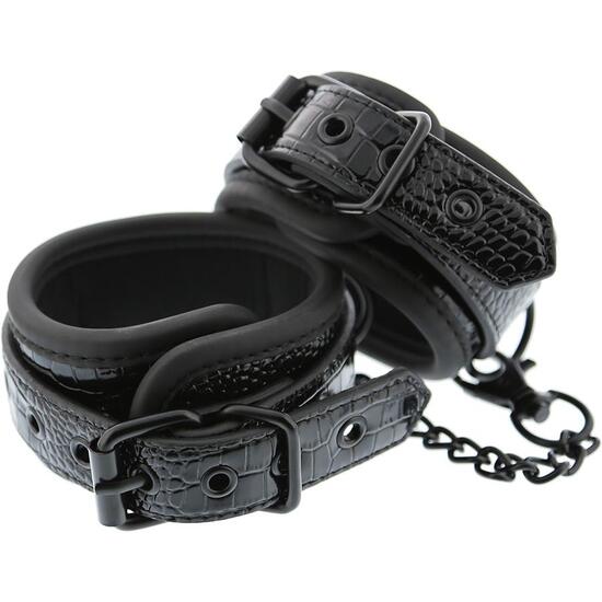 Dale un toque de estilo y control a tus juegos de bondage con estas esposas de tobillo elegantes. Con un diseño croco negro brillante, forro de neopreno suave y duradero y hardware de níquel negro, estas esposas combinan comodidad, seguridad y seducción en cada movimiento.