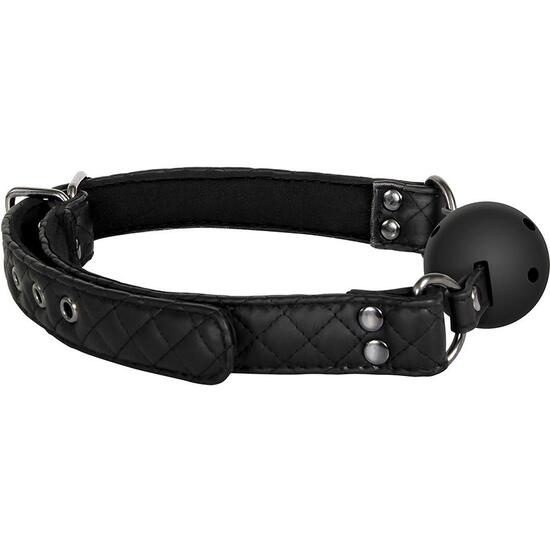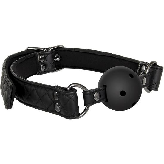 🔞 Blaze Ball Gag Diamond Black 😈🖤 Mordaza de bola transpirable con diseño acolchado en cuero vegano y correa ajustable con hebilla libre de níquel, ideal para juegos BDSM elegantes y seguros.
