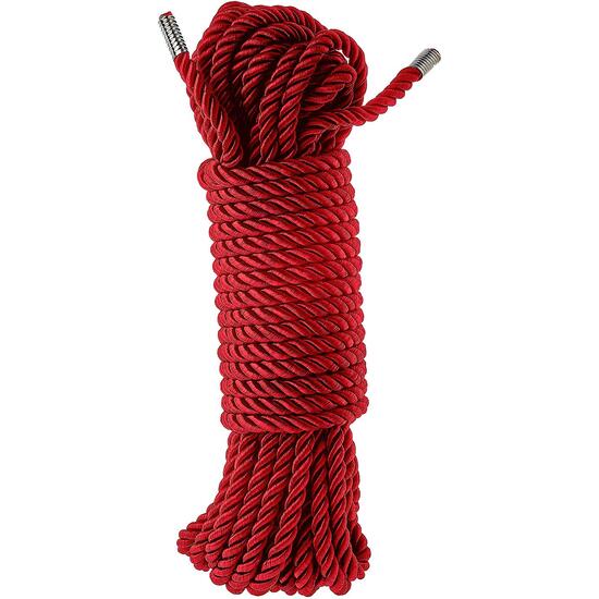 Cuerda de bondage roja de 10 metros, súper suave y sedosa. Extremos de metal anti-deshilachado. Ideal para ataduras sensuales, juegos de Shibari o Kinbaku, tanto para principiantes como para expertos.