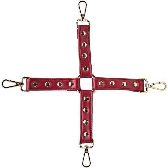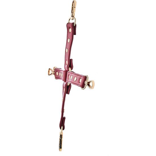 Lleva tu juego bondage a un nuevo nivel con esta hogtie de la colección Blaze Elite, fabricada en cuero vegano rojo con herrajes dorados de alta calidad. Un accesorio atrevido, elegante y resistente que permite inmovilizar brazos y piernas de tu sumis@ para intensificar la experiencia 😈💋.