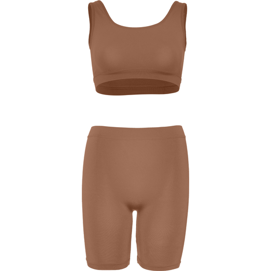 Conjunto seamless 2 piezas 🖤 de elastano opaco ✨, con top tipo tanktop 💪 y pantalones cortos estilo ciclista 🚴.