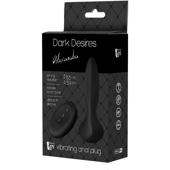Dark Desires Alexandra – Plug Anal Vibrante Negro con Control Remoto, 3 Velocidades y 7 Ritmos