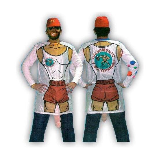 El Disfraz de Socorrista Sexy con pene de tela largo es la opción más divertida y picante para triunfar en tu despedida de soltero.
