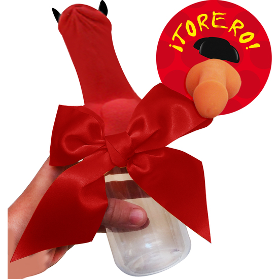 Contiene biberón con tetina pene, escarapelas, lazo y cuernos de torero