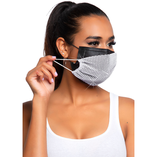 LEG AVENUE HARLOW RHINESTONE FACE MASK COVER ✨💎 Máscara facial de strass reutilizable, ajustable y brillante, perfecta para destacar con estilo en cualquier ocasión.