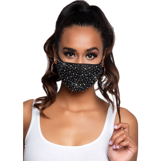 La LEG AVENUE NAYA RHINESTONE FACE MASK es una máscara facial fashion y reutilizable que combina estilo y comodidad. Con hermosos strass AB que ofrecen un brillo iridiscente, esta máscara te hará destacar entre la multitud 🌟.