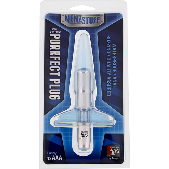Menzstuff Purrfect Plug Azul Transparente – Plug Anal Vibrante para Principiantes, Resistente al Agua