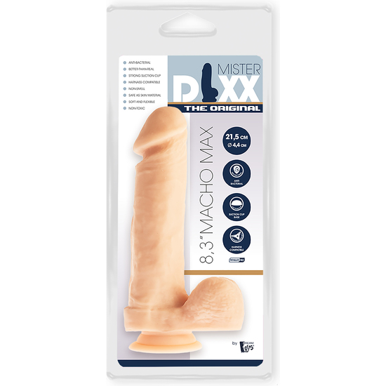 ¡Prepárate para un placer intenso! Macho Max de Mr Dixx es un consolador flexible y realista que se siente como la cosa real. Con su eje recto, cabeza definida y ventosa potente, Max se mantiene firme y listo para complacerte, solo o acompañado 😏✨.