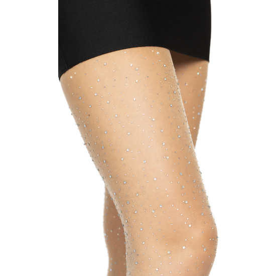 Pantys transparentes ✨ de lycra con brillantes piedras de strass 💎, para un look sofisticado y glamuroso 🔥.