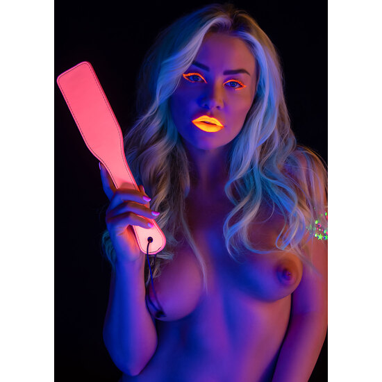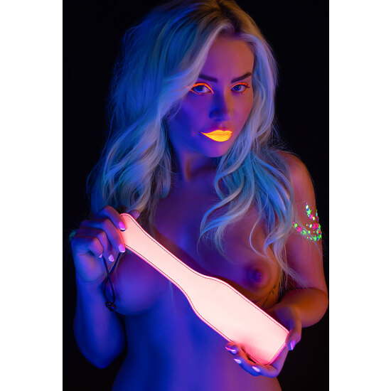 Paddle de cuero vegano que brilla en la oscuridad. Alterna caricias y azotes con estilo y diversión 💋🔥.